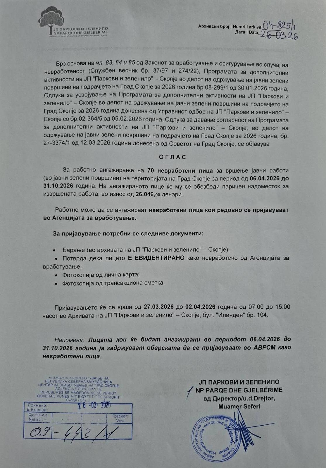 Пријава за јавен оглас Јавен оглас бр.01/2025 Одлука за избор на кандидат по јавен оглас бр.01/2025 Јавен оглас бр.2/2025 Одлука за избор на кандидат по јавен оглас бр.02/2025 Јавен оглас бр.03/2025 Одлука за избор на кандидат по јавен оглас бр.03/2025 Јавен оглас бр.04/2025 Одлука за јавен оглас бр.04/2025 Јавен оглас бр.05/2025 Одлука за јавен оглас бр.05/2025 Јавен оглас бр.07/2025 Одлука за јавен оглас бр.07/2025 Јавен оглас бр.08/2025 Решение за запирање на оглас со бр.08/2025 Јавен оглас бр.09 Одлука за избор на кандидат по јавен оглас бр.09 Јавен оглас бр.10/2025 Одлука за избор на кандидат по јавен оглас бр.10 Јавен оглас бр.11 Одлука за избор на кандидат по јавен оглас бр.11 Пријава за интерен оглас Интерен оглас 01/2025 Одлука за избор на кандидат по интерен оглас бр.01/2025 Одлука за избор на кандидат по интерен оглас бр.02/2025 Интерен оглас 02/2025 Пријава за интерен оглас за унапредување на административен службеник 01/2025 Интерен оглас на административни службеници со унапредување 01/2025 Одлука за избор на кандидат по интерен оглас на административни службеници со унапредување 01/2025 Интерен оглас на административен службеник со унапредување 02/2025 Пријава на интерен оглас за унапредување на административен службеник 02/2025 Одлука за избор на кандидат по интерен оглас за унапредување на административен службеник бр.02/2025 Интерен оглас за административен службеник со унапредување бр.3 Пријава за интерен оглас за унапредување на административен службеник бр.3 Интерен оглас 03/2025 Одлука за интерен оглас бр.03/2025 Интерен оглас 04/2025 Одлука за избор по интерен оглас 04/2025 Интерен оглас 05/2025 Одлука за избор на кандидат по интерен оглас бр.05/2025 Интерен оглас бр.06/2025 Исправка на интерен оглас бр.06/2025 Одлука на избор на кандидат по интерен оглас бр.06/2025 Интерен оглас бр.08/2025 Пријава за интерен оглас за унапредување на даватели на услуги бр.08 Одлука за избор по интерен оглас бр.08
