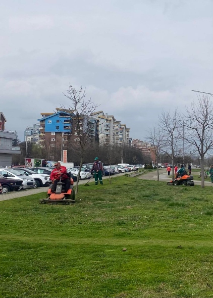 Me mekanizim përkatës, ekipet në terren së bashku me ekipet e komunës, në disa lokacione nëpër gjelbërim po kryejnë: kositjen me makinë të sipërfaqeve me bar, mbledhjen e barit të kositur dhe të gjetheve, krasitjen dhe rregullimin e vegjetacionit, formësimin e drurëve përgjatë shtigjeve të biçikletave, mirëmbajtjen e pastërtisë dhe ngarkimin e masës së mbledhur në kamionë nëpër sipërfaqet publike të asaj pjese të qytetit.